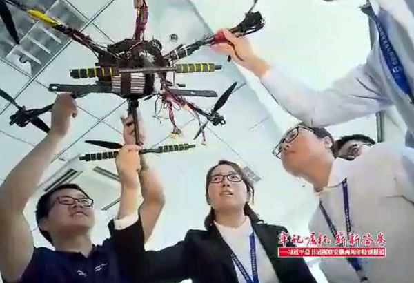 2016年4月,习总书记在中科大先研院视察时,对星空(中国)智能研发的第一代系留旋翼无人机——赛鹰4000T四旋翼系留无人机进行了详细询问。在了解到该产品填补了国内无人机相关领域的空白时,习总书记十分高兴。习总书记希望,星空(中国)智能继续加大科研创新力度,大力发展具有自主知识产权的核心产品。